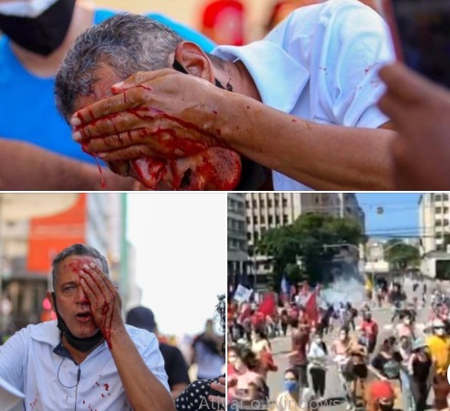 Senhora é atingida pela Polícia Militar de Pernambuco em protesto no centro do Recife. pic.twitter.com/r1RB9Jar8u