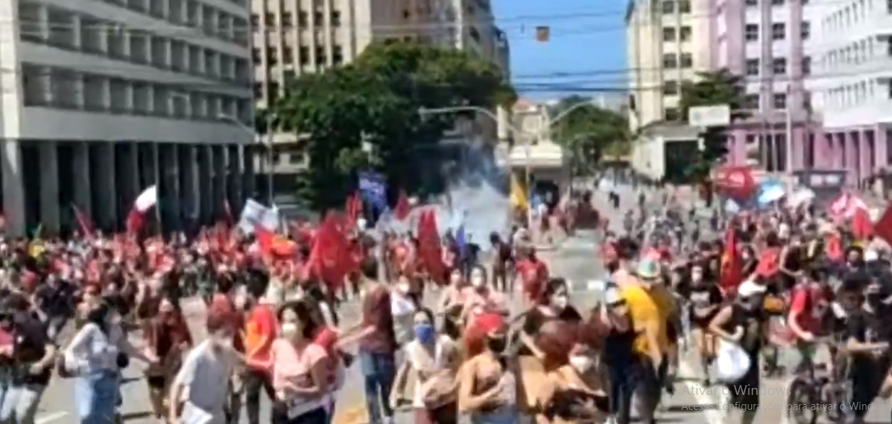 Neste momento a polícia reprime o ato em Recife. A polícia chefiada Paulo Câmara (PSB) atira bala de borracha contra os manifestantes. Compartilhe! #29MForaBolsonaro #ForaBolsonaroGenocida pic.twitter.com/wsRdkHIzAE
