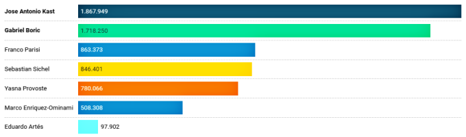 A democrata cristã Yasna Provoste, candidata da centro-esquerda – sua aliança também contou com apoio do Partido Socialista – e Sebastián Sichel, da centro-direita e candidato de Piñera, se revezaram durante toda a apuração entre o quarto e o quinto lugares.