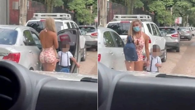 A modelo e advogada Vanessa Medina foi filmada por uma mãe de um aluno, de dentro de um carro, que se disse “indignada” com o traje e compartilhou as imagens em redes sociais. Nas imagens, Vanessa pode ser vista ajudando seu filho a sair do carro e entrar na escola.