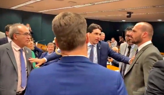 Deputado agredido por Eduardo Bolsonaro desabafa: “A família Bolsonaro está desequilibrada emocionalmente. Não sabe ouvir as verdades, ofende todo mundo que vem para a frente. Ele veio para cima de mim para me agredir. Só não me agrediu porque a Polícia segurou ele. Estou aqui para defender a vida e não quero sair morto não. Ele anda aqui dentro armado, então estou com medo, sim”