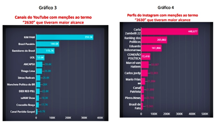 O monitoramento aponta algo ainda mais importante: políticos e canais de extrema direita, vários deles frequentemente acusados de veicular fake news, têm dado as cartas no debate digital sobre a questão. Eles foram responsáveis por nada menos que 93% das 2.101.280 visualizações geradas por postagens que continham o termo “2630” entre 18 e 28 de abril.