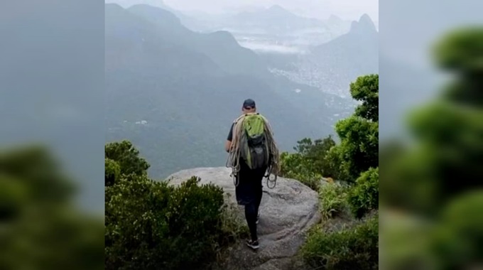 No domingo (19), a turista Karlla Araújo participou da subida da Pedra da Gávea, no Rio de Janeiro, conduzida pelo guia Leilson Barros de Souza.