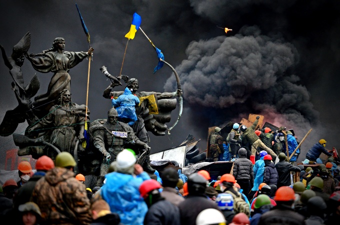 E eles estavam recorrendo à força. O que quer que se pense dos protestos da Maidan, a crescente violência dos envolvidos foi a chave para sua vitória final. Em resposta a um ataque brutal da polícia, os manifestantes começaram a lutar com correntes, paus, pedras, bombas de gasolina, até mesmo um trator – e, eventualmente, armas de fogo, com tudo culminando naquilo que foi efetivamente uma batalha armada em fevereiro, que deixou 13 policiais e quase 50 manifestantes mortos. A polícia “não podia mais se defender dos ataques dos manifestantes”, escreve o cientista político Sergiy Kudelia, fazendo com que eles se retirassem, antecipando a saída de Yanukovych.