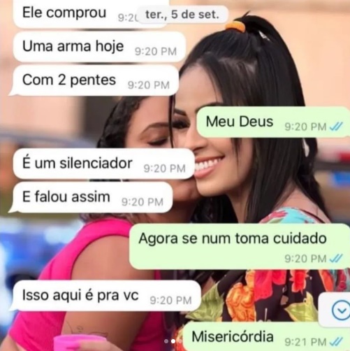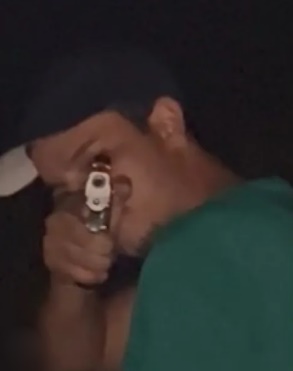 As imagens mostram que Ielly Gabriele Alves gravava o namorado enquanto ele segura e empunha uma arma. O homem, identificado pela Polícia Militar como Diego Fonseca Borges, 27, aponta para a jovem e dispara.