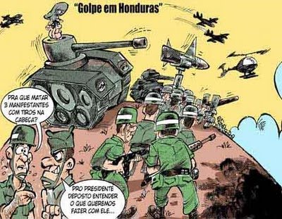 Quando em 2009 os milicos tomaram o poder em Honduras, expulsando o presidente eleito legitimamente, a opinião pública internacional condenou de imediato. O comportamento da imprensa nacional foi esquizofrênico, fazendo eco a princípio com a reação internacional, mas logo em seguida mudando lentamente de posição, até defender abertamente a “legalidade” de um vergonhoso golpe de estado.
