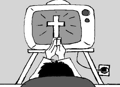 Sim, é apenas uma missa. Mas há casos mais graves, bem mais graves. Na Rede Record é difícil fazer os olhos não tropeçarem num bispo ou num pastor a cada hora – as bênçãos estão para a Record assim como os sorteios e loterias estão para o SBT. Daí para a frente, zapeando pela TV aberta, constatamos que a grande maioria das estações e das redes, ao menos uma vez por semana, abre as antenas para a propaganda religiosa, boa parte dela dirigida a captar doações do fiel telespectador.