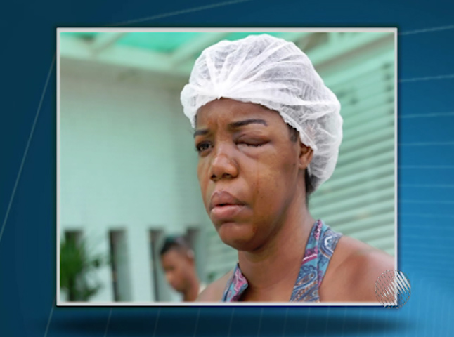 A cozinheira foi inicialmente atendida no Hospital Geral do Estado (HGE), onde ficou do dia 22 a 24 de janeiro, quando foi transferida para o Hospital do Subúrbio para ser submetida a uma cirurgia. Ela disse que foi diagnosticado rompimento de um osso da face, do globo ocular e das pálpebras, mas a visão esquerda não foi restabelecida.