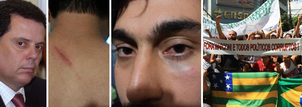 Depois de perder o controle do governo, o respeito da população e força política, o governador Marconi Perillo agora perdeu o juízo. O resultado é agressão a estudantes, com chute nas costas, olho roxo e costela quebrada. Revolta se espalha nas redes sociais