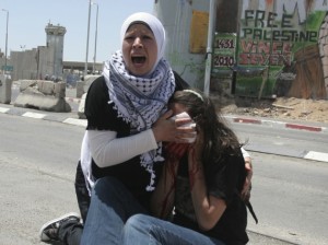 Testemunhas afirmam que Emily foi atingida no rosto por um tiro disparado pela polícia de Israel. A arma, de acordo com oficiais israelenses, não é letal e as cápsulas disparam gás quente contra as vítimas.