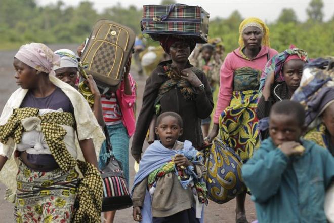 Família congolesa deixa a cidade de Kimbumba para fugir da violência que se instaura gradativamente no país africano. (Foto: Agência EFE)