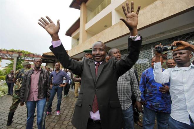 Líder dos rebeldes do M23, Jean-Marie Runiga, se preparar para um discurso na cidade de Goma, RDC. (Foto: EFE)
