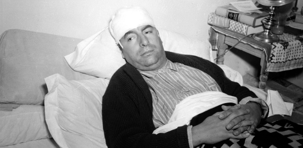 Pablo Neruda é fotografado se recuperando de suposto ataque da polícia em Cuernavaca, na Cidade do México (29/12/1941)