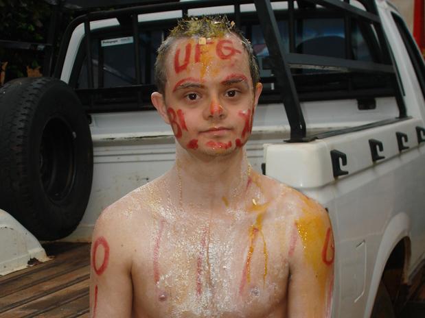 Kallil, o primeiro estudante da UFG com síndrome de down, comemora seu ingresso à universidade. (Foto: divulgação)