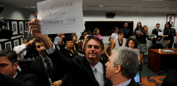 Em tom de bravata e peitando o grupo contrário à presidência de Feliciano, Bolsonaro perdeu a compostura e disparou: “Se quer queimar a rosca vai queimar, po”, disse, para aplauso de parte dos manifestantes que apoiavam Feliciano.
