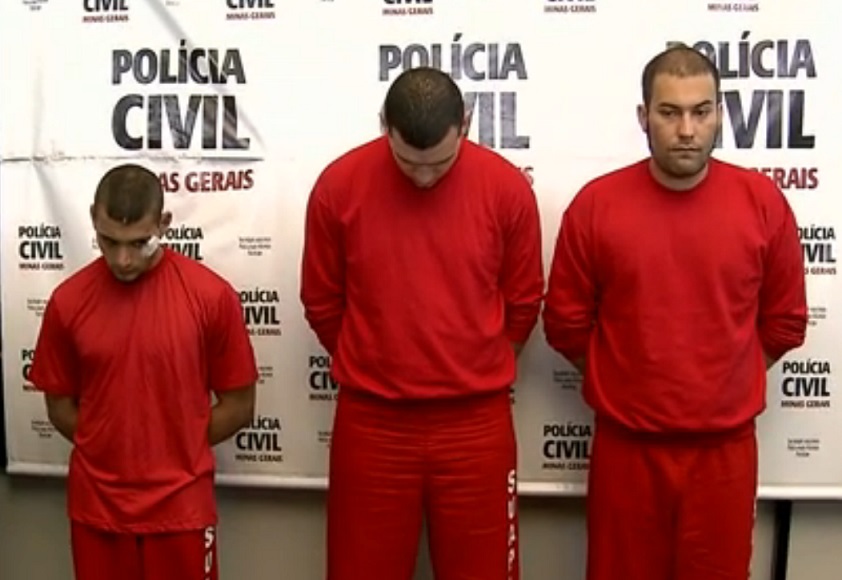 Donato, João Matheus e Marcus Cunha durante apresentação promovida pela Polícia Civil. (Foto: Reprodução/Globo Minas)