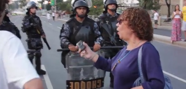 No Rio de Janeiro, uma senhora chamou a atenção pela coragem com que se posicionou diante de membros da Tropa de Choque da Policia Militar.
