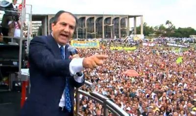 Pastor da Igreja Quadrangular é confundido com ativista gay e é retirado à força do palco durante manifestação organizada por Silas Malafaia em Brasilia.