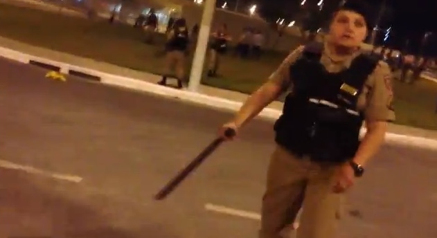 Um cinegrafista que filmava a repressão da PM contra manifestantes questionou alguns policiais sobre o estado de saúde do jovem que despencou do viaduto. “Por gentileza, parece que alguém caiu lá de cima”. A resposta dos policias você pode assistir no vídeo abaixo: