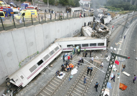 O balanço da tragédia tem sido revisto. Mas sejam quais forem os números finais, é o pior em 40 anos na Espanha. As dez carruagens acabaram todas fora dos trilhos, e suspeita-se que, talvez por recompensar um atraso de cinco minutos, o trem era conduzido com demasiada velocidade.