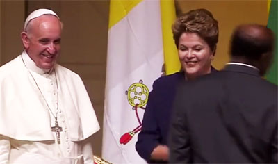 Durante a recepção ao Papa Francisco no Rio de Janeiro, enquanto este e Dilma Rousseff, lado a lado, recebiam cumprimentos de autoridades e personalidades, Barbosa cumprimentou o líder religioso e ignorou a presidente.