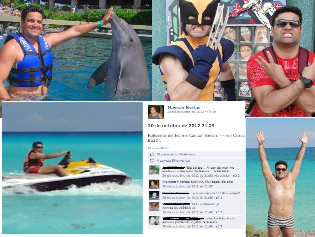 Antes, em 2002, a vida estava boa para Maycon, como você pode ver nas fotos do líder de massas em Cancún, no México, num turismo “padrão FIFA” de deixar a gente com inveja. Como está sofrendo o revoltado Maycon!