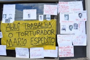 Três manifestantes foram agredidos ao colar cartazes no prédio onde fica o escritório do advogado Mário Espedito Ostroviski, identificado durante investigação da Comissão da Verdade como chefe das torturas no Batalhão de Fronteira de Foz do Iguaçu. Convocado para depor, Espedito não compareceu à audiência pública, a informação até o momento era de que ele estaria desaparecido já há quatro dias. A ideia era preparar a Av. Brasil, principal da cidade, para fazer uma pequena manifestação em frente ao edifício Metrópole, onde, na sala 207 ex tenente atua como advogado.