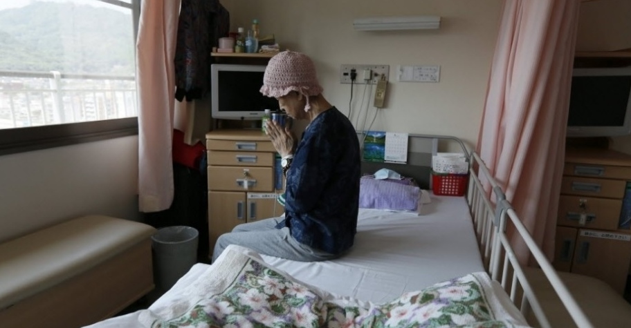 Hisae, de 72 anos, é hospitalizada duas semanas por mês para tratar um linfoma causado pela radiação da bomba. Cerca de 2.000 sobreviventes têm sido hospitalizados no último ano no hospital
