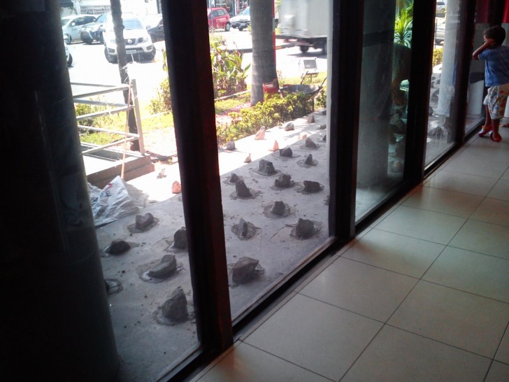 Pressionado, o Banco Bradesco, agência do Parque 10, em Manaus, resolveu remover as pedras pontiaguadas colocadas na parte externa da agência. A medida se destinava a impedir que o local fosse ocupado à noite e durante a manhã por mendigos.