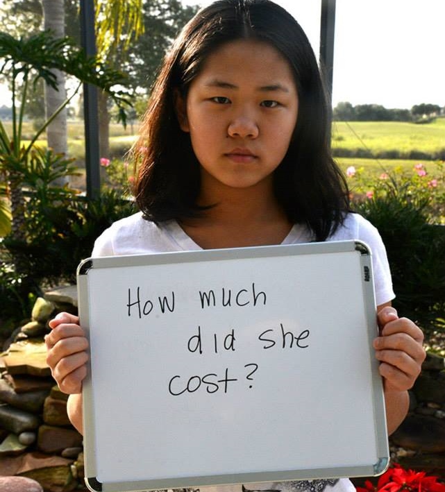 “Os comentários vieram desde o início”, conta Kelley-Wagner. “Nós estávamos fazendo compras, e os funcionários dos caixas ou vendedores diziam coisas do tipo ‘Quanto ela custou?’ ou ‘Você poderia comprar um carro com o dinheiro que custou para adotá-la’ E eu dizia, ‘Você está interessado em adotar?’ Se a pessoa dizia que não eu respondia ‘Então porque você está me perguntando?’. A minha resposta fazia as pessoas pensarem um pouco, e talvez até considerarem o impacto de suas palavras e pedirem desculpas.”