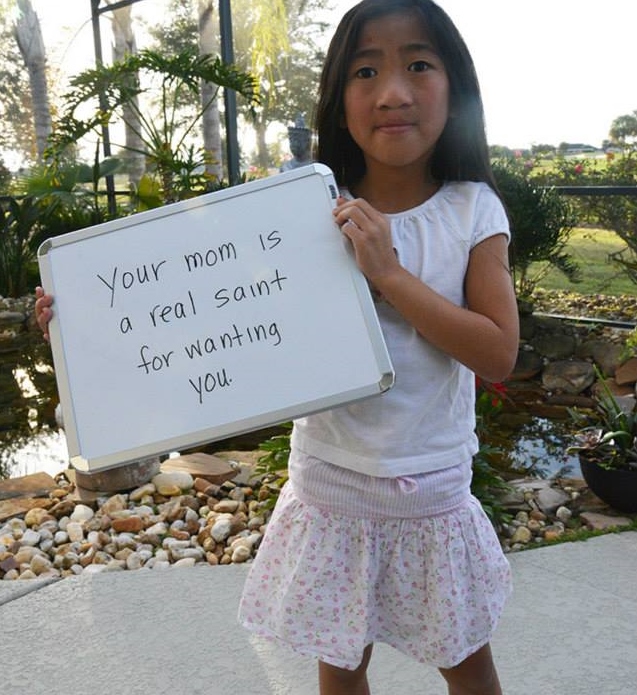 Depois de se esquivar de perguntas e comentários inapropriados por tantos anos, Kelley-Wagner teve uma ideia. “Eu queria transformar essa situação em algo que pudesse ensinar as pessoas, principalmente porque eu não queria que as meninas guardassem tanta negatividade dentro delas.” Então, ela perguntou para suas filhas se elas concordavam em posar para fotos com os comentários escritos em quadros. “Elas toparam na hora”, ela conta. “A Lily até disse ‘Acho que as pessoas precisam saber o quanto elas são rudes’. Nós sentamos e fizemos uma lista das frases e eu fiquei surpresa com a quantidade de incidentes dos quais elas se lembravam, e eu não”. Kim intitulou o projeto de “Coisas que dizem sobre minhas filhas adotadas”, e em janeiro ela postou as fotos no Facebook. Essa semana o projeto começou a repercutir na internet e apareceu em outros blogs e sites.