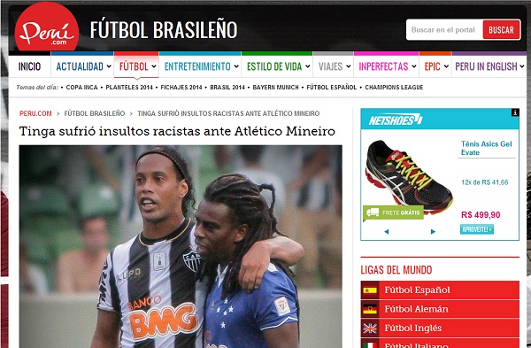 Site do Peru publica mentira sobre incidente racista contra Tinga