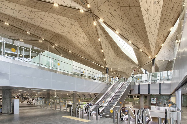 O aeroporto de Pulkovo foi projetado pelos profissionais do escritório Grimshaw Architects, que uniram a simplicidade dos materiais a vários detalhes de construção, apostando na redução de impactos. Erguida com madeira sustentável, a cobertura do aeroporto tem os traços de um origami, e a parte superior também permite a entrada da luz natural nos amplos espaços do aeroporto.
