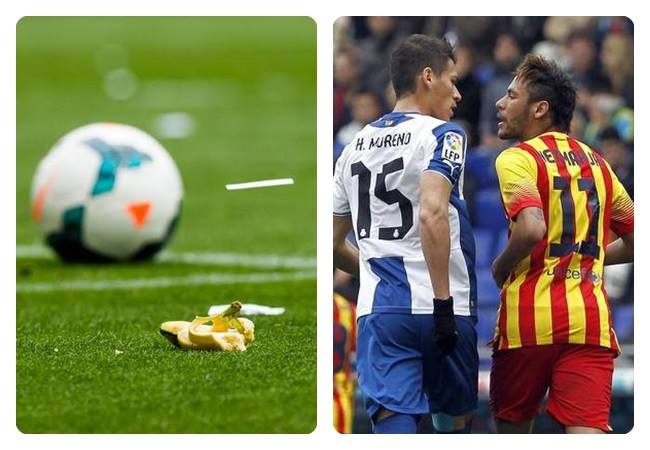 Torcedores do Espanyol imitaram sons de macacos para provocar os brasileiros Neymar e Daniel Alves na partida contra o Barcelona, neste sábado, no Estádio Cornellà-El Prat. O racismo da torcida da casa também envolveu uma banana que foi atirada no gramado. Os principais jornais espanhóis não noticiaram os atos racistas. A informação com a foto da banana no gramado foi divulgada no site Sphera Sports Channel. O Barcelona venceu o jogo por 1 a 0.