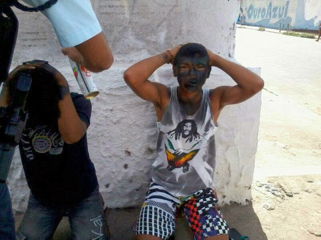 Circulou nas redes sociais em dezembro do ano passado uma imagem de dois policiais militares do Ceará pichando o rosto de dois adolescentes. Os policias estariam supostamente ‘punindo pichadores’.