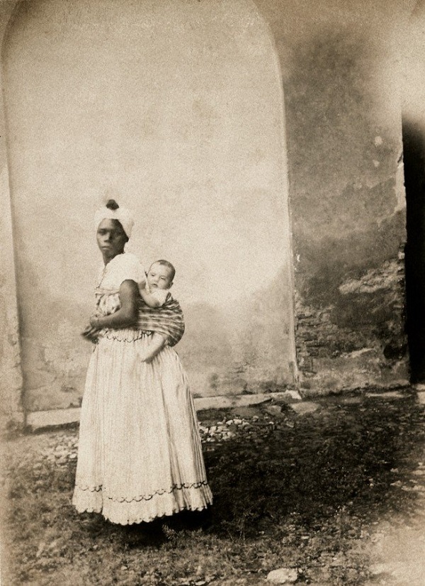Negra com uma criança branca nas costas, Bahia, 1870. (Acervo Instituto Moreira Salles).