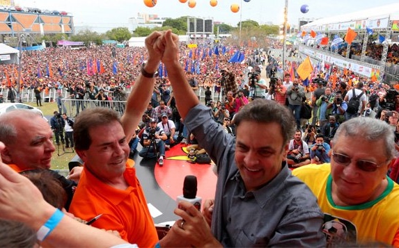 Aécio falou em seguida e disse que tiraria a Petrobras “das garras” do PT. Prometeu também voltar em 2015, já como presidente da República. Em seguida, concedeu uma breve entrevista, na qual criticou o pronunciamento de Dilma.