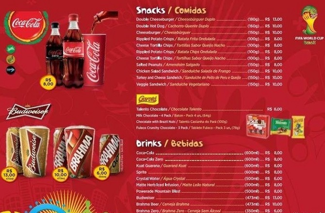Copa 2014: Fifa divulga tabela de preços dos comes e bebes nos estádios durante a Copa do Mundo. Produtos serão vendidos dentro das arenas e nas "fan fest" oficiais