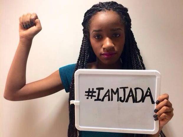 Contrariando aqueles que a denegriram, a adolescente veio a público contar sua história e pedir justiça. Na última segunda-feira, uma foto de Jada com a mensagem “I am Jada” (Eu sou Jada) foi compartilhada milhares de vezes e fez com que outros internautas publicassem fotos com a mesma mensagem, com o punho para o alto, em apoio à causa.