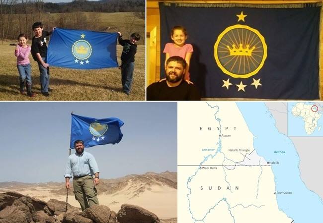 Homem acha território que não é de nenhum país e anuncia reinado para que sua filha seja princesa. Americano foi a área entre Egito e Sudão e colocou uma bandeira desenhada pela menina