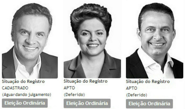 Ao todo, 10 candidatos foram considerados aptos e têm o registro tramitando no TSE, incluindo os outros dois principais concorrentes, Dilma Rousseff (PT) e Eduardo Campos (PSB). Apenas Aécio aguarda julgamento.