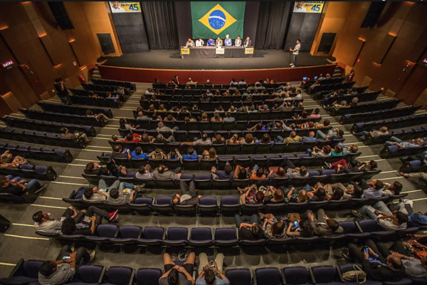 O último a falar foi o empresário e advogado Sérgio Dantino, que agencia carreiras de famosos, e resumiu o espírito dos presentes: “Se tivesse no segundo turno um partido do Satanás e o PT, eu votava no partido do Satanás”.