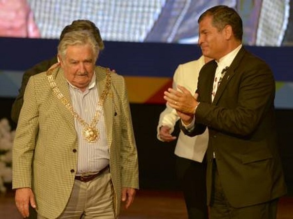Com muita saudade adiantada e um legado que pode ser sintetizado pela fórmula “o presidente-atitude” ou “o presidente-pensador”, o lendário Mujica foi de longe o grande protagonista da cúpula de Quito. Já declarado “Cidadão Ilustre da Cidade de Guayaquil” em ocasião anterior, ontem Domenica Tabacchi – a bela vice-prefeita da cidade e adversária política de Rafael Correa – lembrou com inflamado discurso que “seis balaços, nem 15 anos de prisão foram capazes de inibir seu espirito guerreiro”, oferecendo a Mujica “a chave de uma porta grande, que é a do nosso coração”.