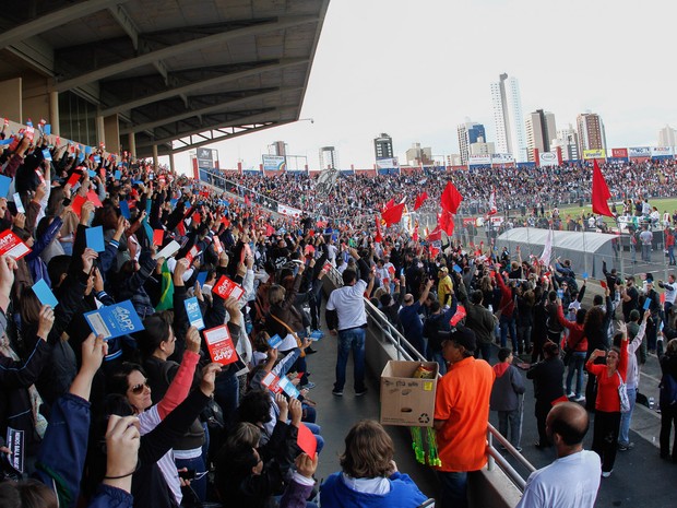 Mais cedo, 25 mil docentes e servidores de diversas categorias, segundo a Guarda Municipal, se concentraram em frente à Alep (Assembleia Legislativa do Paraná) e saíram em caminhada em direção ao estádio na Vila Capanema.