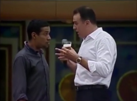 O diálogo abaixo ocorreu no púlpito de uma igreja Universal do Reino de Deus em São Paulo, entre o bispo Rogério Formigoni e um homem que se disse viciado em “pedra, pó, cachaça, maconha” há 20 anos. Foi gravado e divulgado na página do Facebook pertencente ao líder religioso.