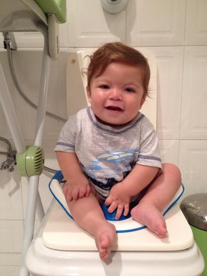 Nesse momento, meu marido largou tudo, o tirou da cadeirinha e o levou para o vaso. E, assim, aos 5 meses, Luca fez cocô sentado na privada pela primeira vez.