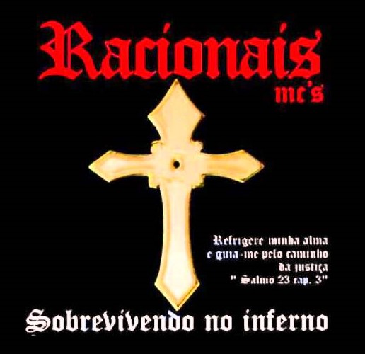 A capa de “Sobrevivendo no Inferno”, lançado em 1998, traz uma cruz e trecho do Salmo 23: “Refrigere minha Alma e guia-me pelo caminho da Justiça”.