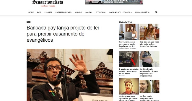 Ou seja, o Sensacionalista apresentava uma notícia falsa que espelhava, ironicamente, outra verdadeira, para mostrar quão absurda é a pretensão autoritária da bancada homofóbica, mal chamada “evangélica” (os evangélicos de verdade não merecem ser confundidos com esses pilantras que exploram a fé alheia e espalham ódio na sociedade), que quer negar a gays e lésbicas direitos civis básicos garantidos pela Constituição Federal.
