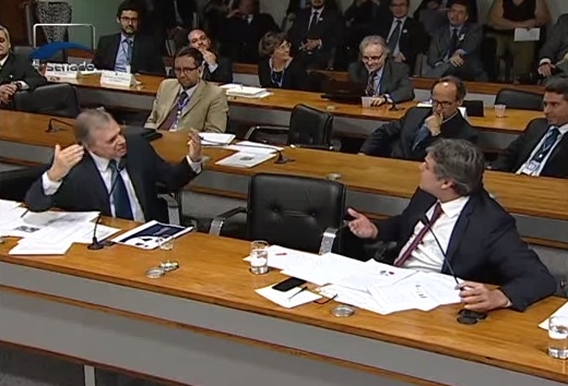 “Eu não sou a pessoa mais indicada para pedir um pouco de calma a todos. Porque, muitas vezes, eu baguncei reuniões presididas por vossa excelência na CAE [Comissão de Assuntos Econômicos]. Vamos esperar, vossa excelência terá a palavra em seguida”, interveio o presidente do colegiado, Aloysio Nunes Ferreira (PSDB-SP), dirigindo-se a Lindbergh e deixando escapar risos nervosos, na tentativa de apaziguar os ânimos.