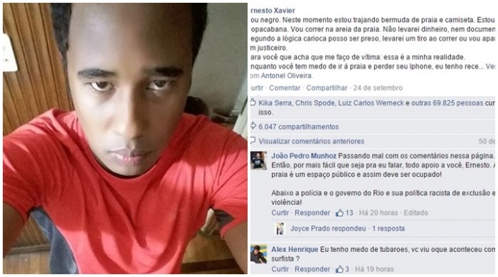 Em tempos em que a Polícia Militar do Rio de Janeiro impede que adolescentes da periferia vão à praia para “prevenir” arrastões, um jovem negro fluminense faz um desabafo nas redes sociais.